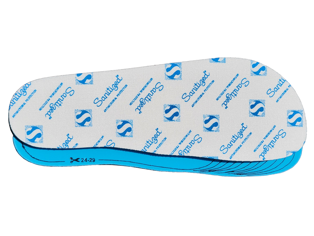 - Střední vrstva – polyuretanová pěna: měkká a pružná, rovnoměrně rozkládá tlak chodidla.