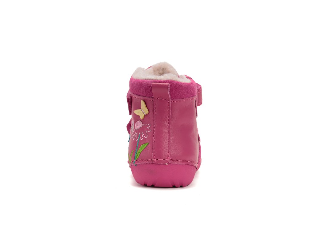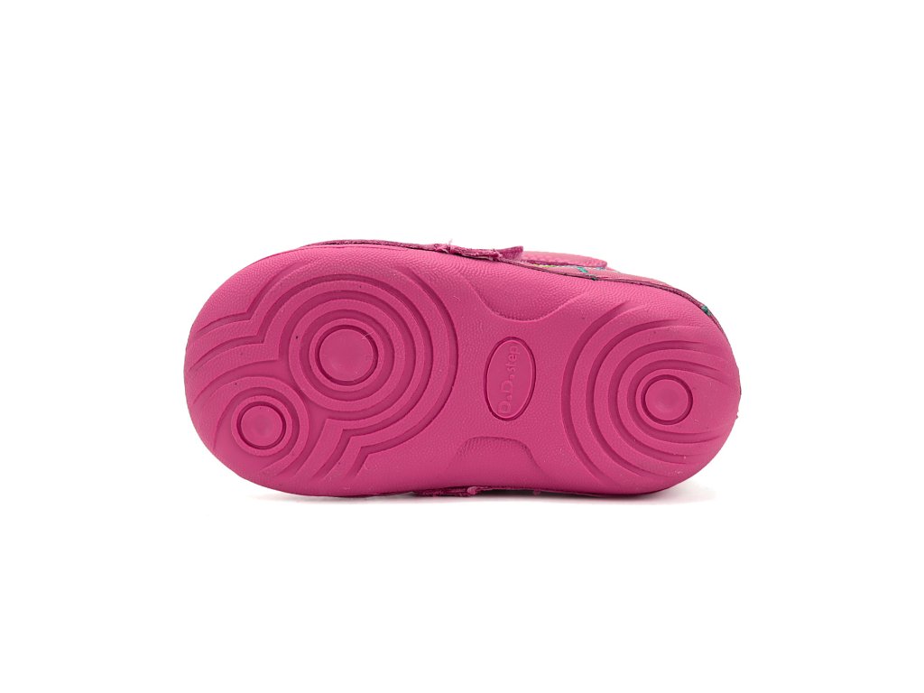 - Opatek a podešev: zpevněný opatek podporuje správné držení nohy a zdravý vývoj chodidla. Lehká, ohebná podešev z přírodní pryže poskytuje neklouzavý povrch a podporuje přirozený pohyb. Ochrana špičky: zvýšený gumový okop chrání botu před poškozením a dětskou nohu při pohybu.