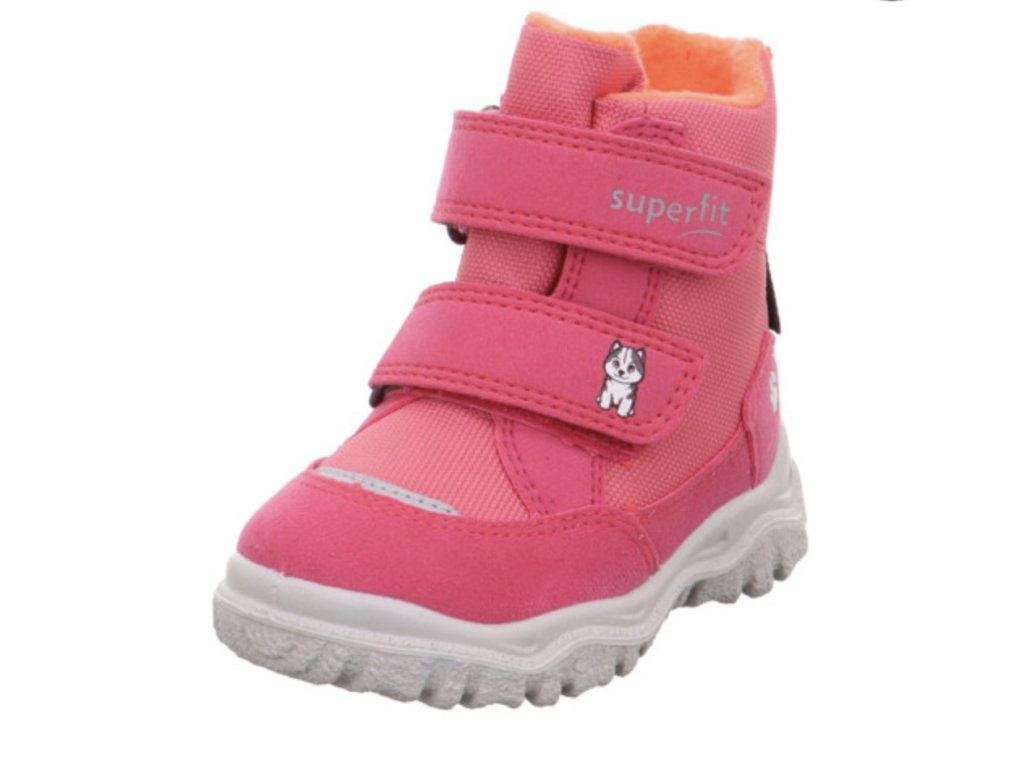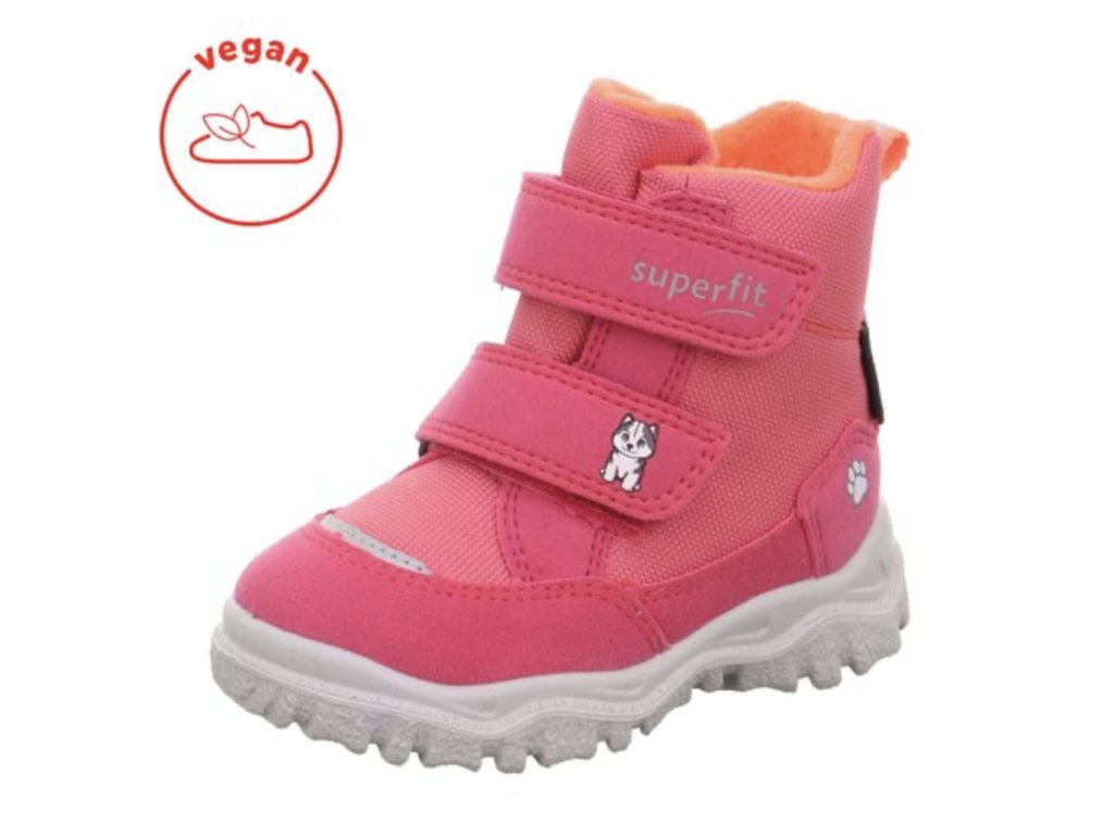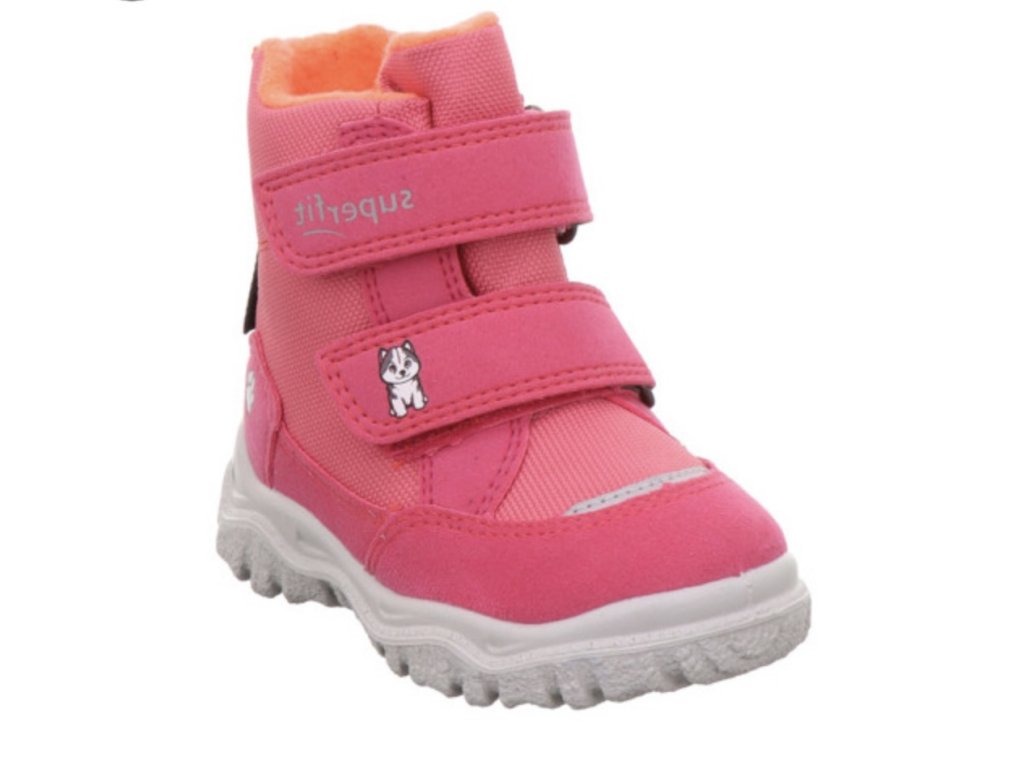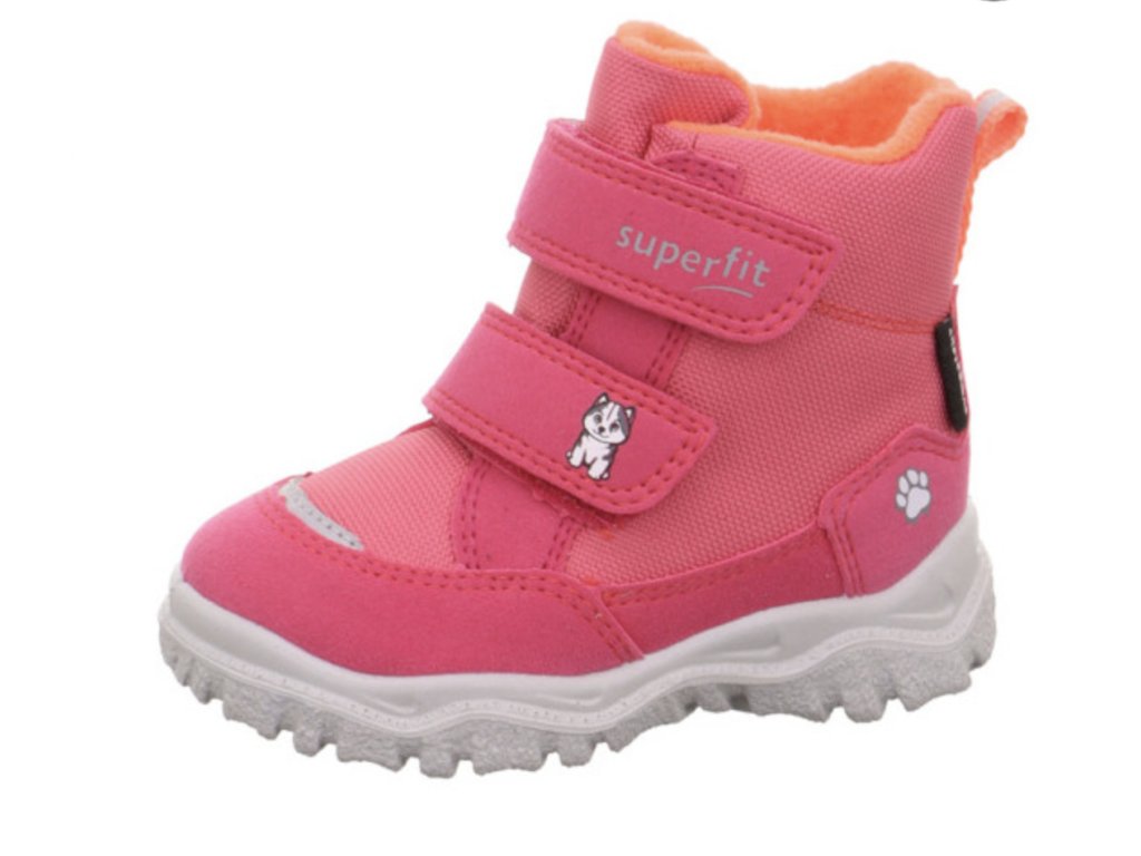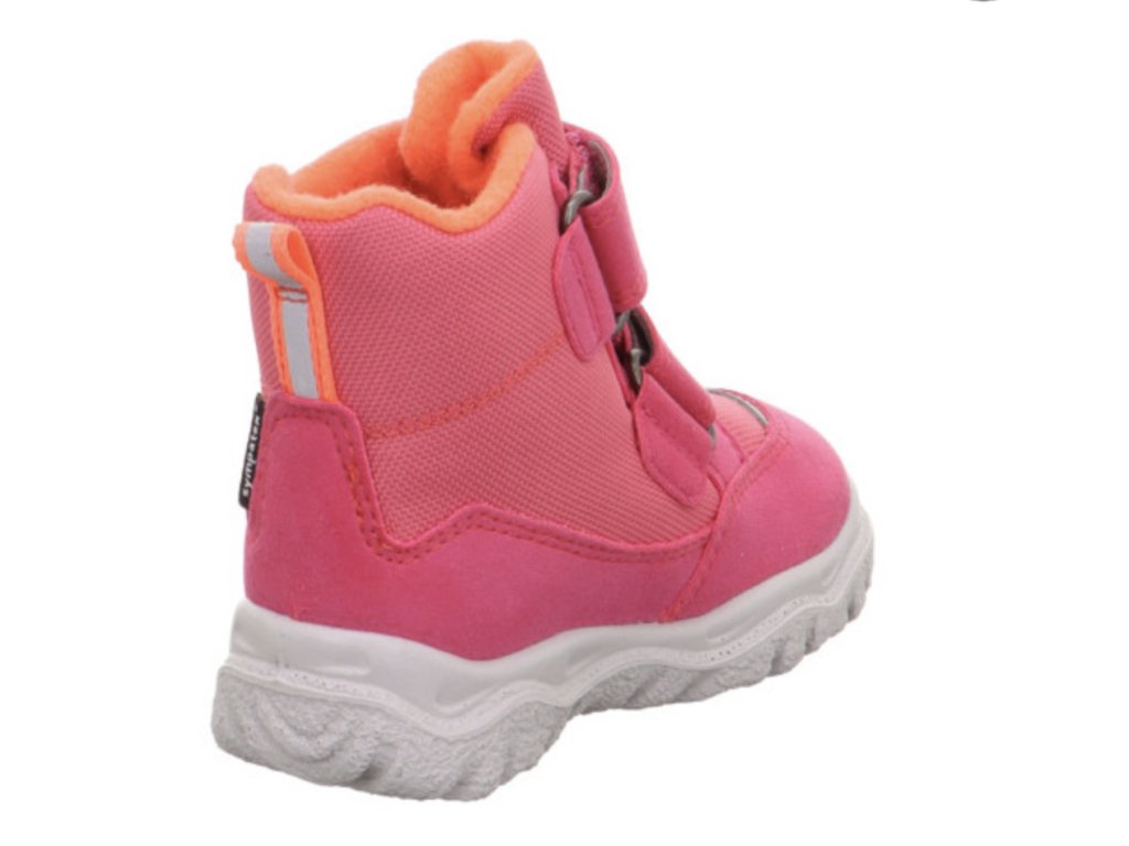 Zateplené zimní dětské boty Superfit Husky1 šíře M v růžovo - oranžové barvě s membránou Sympatex udrží nožky v suchu a pohodlí i v mrazivém počasí. Lehká a ohebná podrážka s protiskluzovým vzorkem zajišťuje stabilitu na sněhu i ledu. Díky dvěma suchým zipům se boty snadno obouvají a dobře přizpůsobí noze.